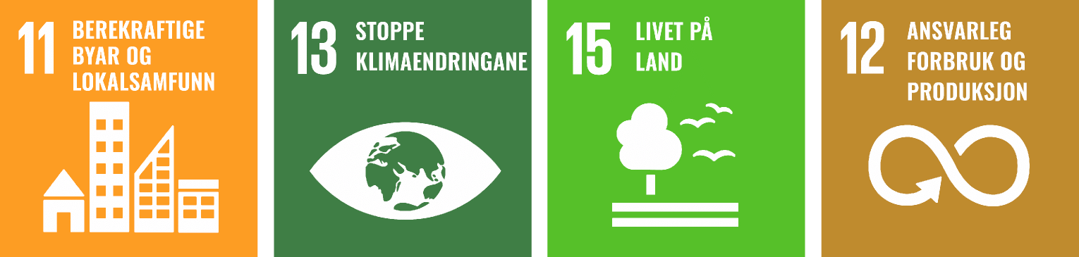 Berekraftige byar og lokalsamfunn: redusere negativ påverknad på miljøet frå byar og lokalsamfunn (målt per innbyggjar), med særleg vekt på luftkvalitet og avfallshandtering. Vi har som mål å redusere vårt klimafotavtrykk ved å ta bærekraftige val.